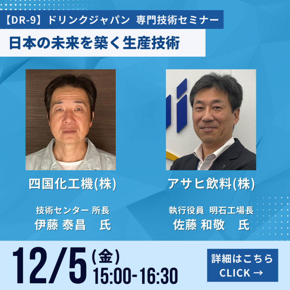 最新技術や業界動向を収集できる機会を創出し、飲料業界の技術革新と社会的課題の解決に貢献してまいります。